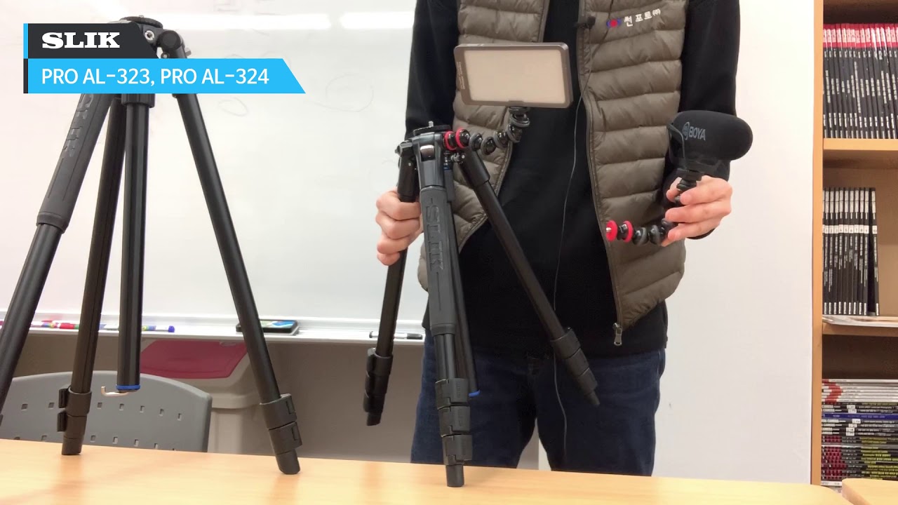 SLIK PRO AL-323SVH є наступником моделі PRO 330 Video і поставляється з нещодавно розробленим алюмінієвим штативом PRO AL-323 для подорожей та модернізованою поворотною та похилою головкою SVH-501.