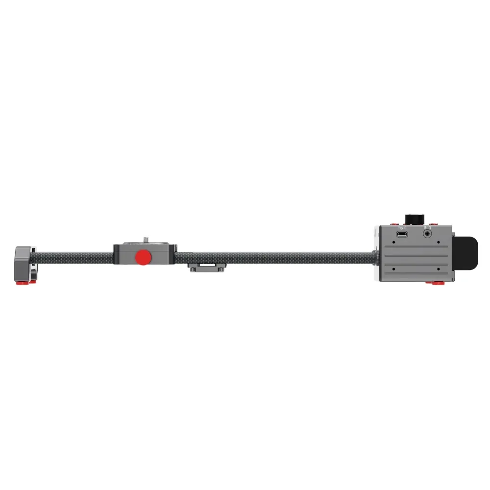 Miliboo MDG60 — це високоточний моторизований слайдер, створений для відеооператорів і фотографів, які прагнуть досягти ідеально плавного руху камери. Завдяки потужному електродвигуну, інтелектуальному контролю руху та можливості програмування параметрів, цей слайдер відкриває широкі можливості для створення динамічних кадрів, плавних панорам і професійних таймлапсів. Конструкція з вуглецевого волокна та алюмінієвого сплаву забезпечує одночасно легкість і жорсткість, що дозволяє витримувати навантаження до 8 кг при горизонтальній установці. Довжина рухомої частини — 50 см, а привід працює з високою точністю навіть при мінімальній швидкості, що особливо важливо під час зйомки предметів, продуктів або сцен з м’яким переміщенням камери. Модель MDG60 обладнана інформаційним LCD-дисплеєм, який показує всі ключові параметри: час руху, швидкість у відсотках, поточну позицію, довжину ходу, стабілізаційні паузи (STAB) та затримки (DELAY) під час таймлапсу. Для максимальної універсальності слайдер можна встановити на штативи чи інші опори, забезпечивши різні кути нахилу — горизонтальний, похилий або навіть вертикальний. Підключення живлення можливе через Type-C порт або акумулятори Sony NP-F (не входять до комплекту), а також через PowerBank, що робить Miliboo MDG60 ідеальним рішенням для виїзних зйомок.