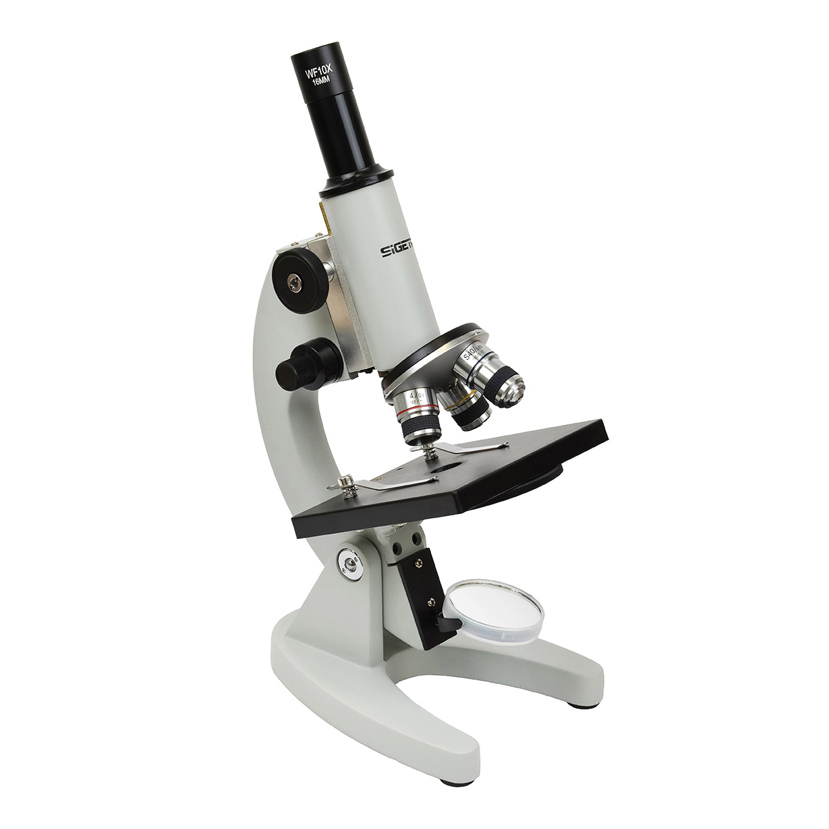 SIGETA ELEMENTARY 40x–400x LED Mono — це оновлений навчальний мікроскоп, створений для вивчення біологічних зразків у прохідному світлі методом світлого поля. Модель рекомендована Міністерством освіти і науки України для використання в школах, ліцеях, коледжах і на початкових етапах вивчення мікросвіту. Завдяки поєднанню міцної металевої конструкції, якісної оптики та LED-підсвітки, цей прилад забезпечує стабільну роботу, чітке зображення і комфортне користування як у навчальному процесі, так і вдома.