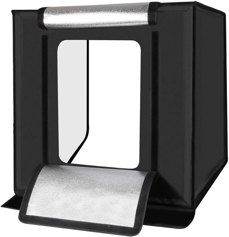 Завдяки якісним світлодіодним лампам (2×32 LED, 5500K) фотобокс забезпечує рівномірне денне світло, без різких тіней та кольорових спотворень. Сріблясте дзеркальне покриття всередині розсіює світло, створюючи м’яке освітлення і глибину зображення. Це дає можливість отримувати яскраві, чіткі й контрастні фото без додаткової обробки.